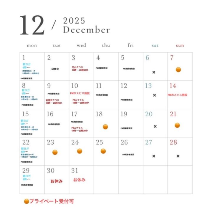 12月も、ヨーガセラピーを通じて、
